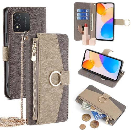 Funda para Honor X5 4G de Cuero con Textura Litchi Cruzada (Gris)