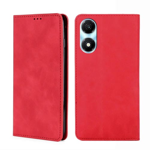 Funda de Cuero Magnética para Honor X5 Plus 4G y Play 40C con Sensación de Piel (Rojo)