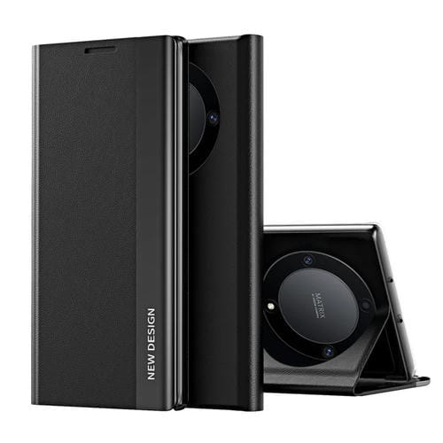 Funda de Cuero para Honor X50 con Adsorción Galvanizada Lateral (Negro)