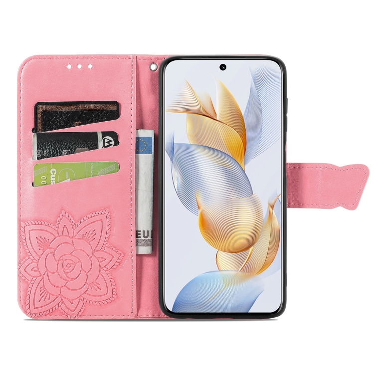 Funda para Honor X6A de Cuero con Relieve Flor de Amor y Mariposa (Rosa)