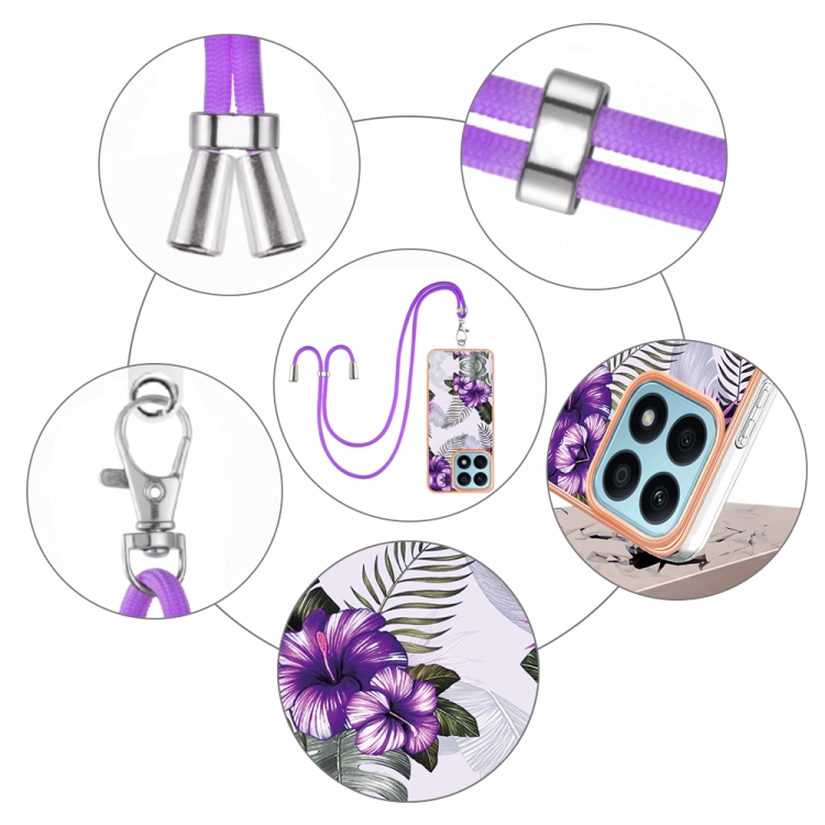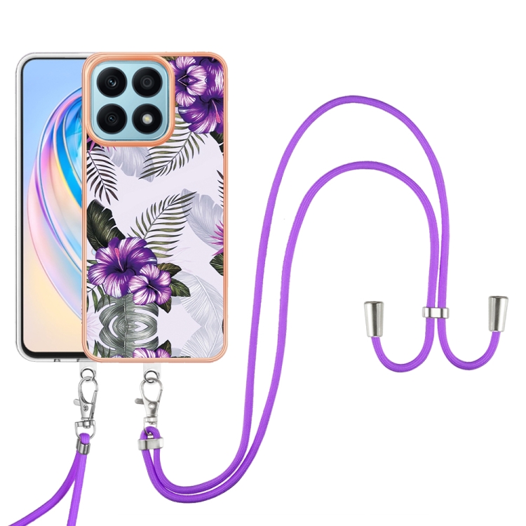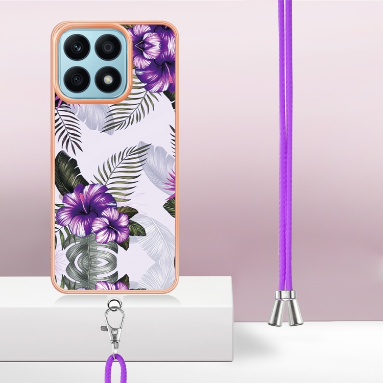 Funda TPU para Honor X8A con Galvanoplastia Imd y Cordón (Flor Morada)