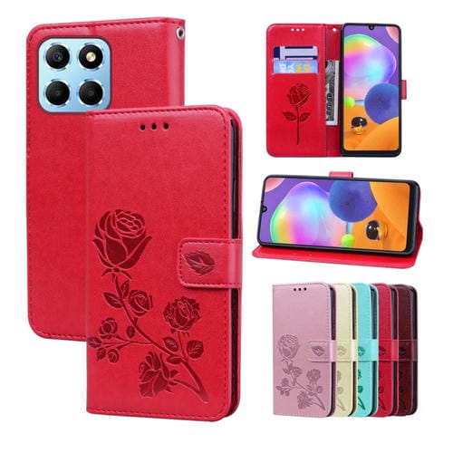 Funda Flip PU Cuero para Honor X8B Rose Embossed (Rojo)
