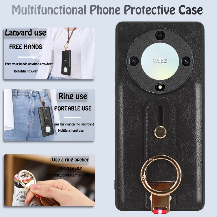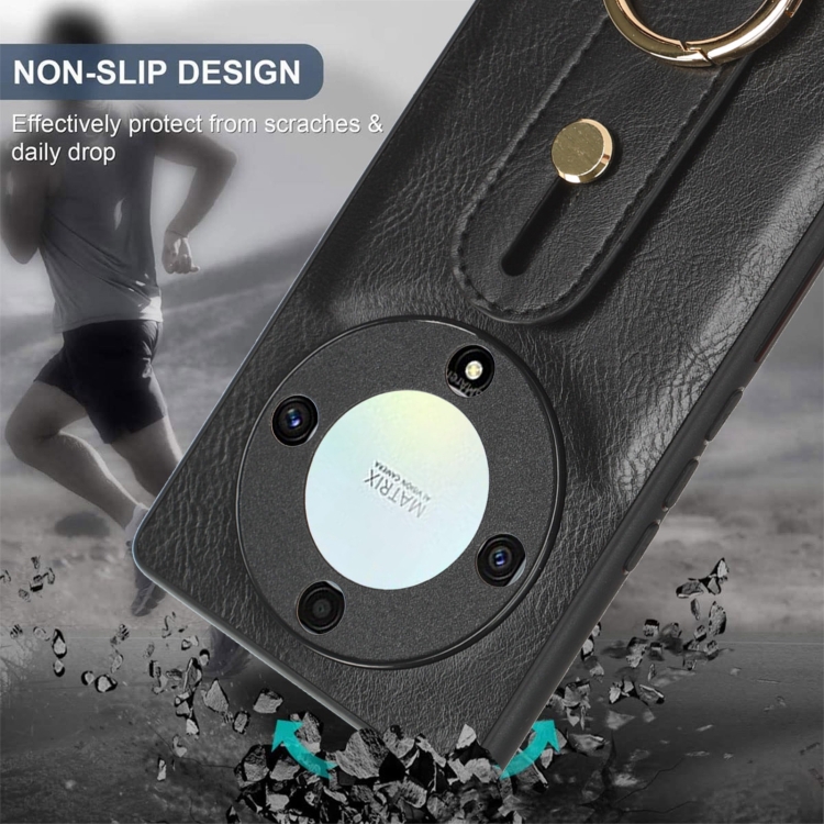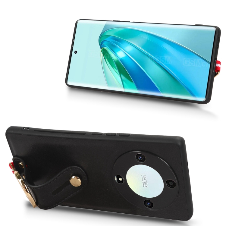 Funda Trasera de Cuero con Muñequera para Honor X9A / X40 / Magic5 Lite (Negro)