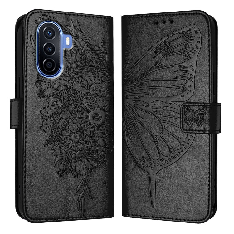 Funda de Cuero para Huawei Enjoy 50 4G y Nova Y70 Plus con Mariposa en Relieve (Negro)