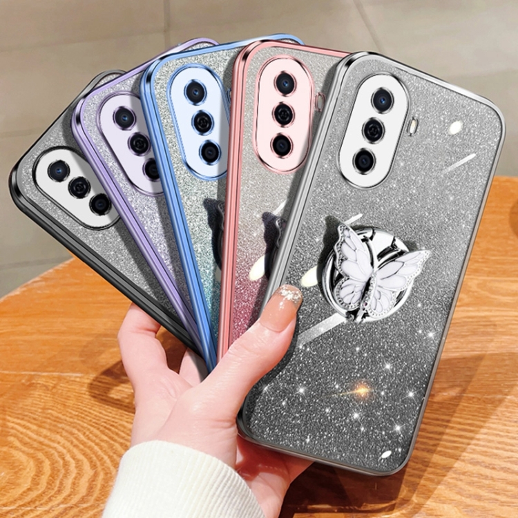 Funda para Huawei Enjoy 50 de TPU con Soporte de Mariposa y Brillo Degradado (Negro)