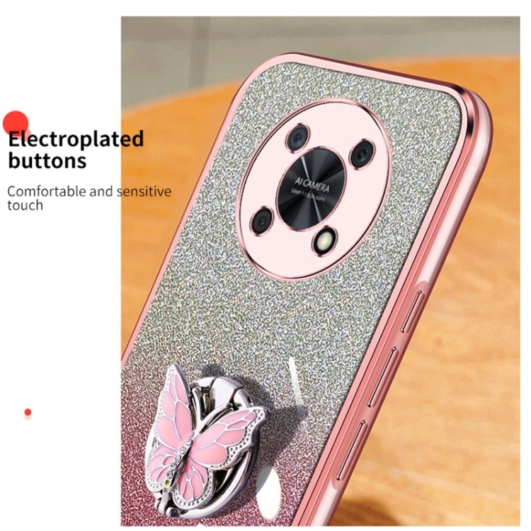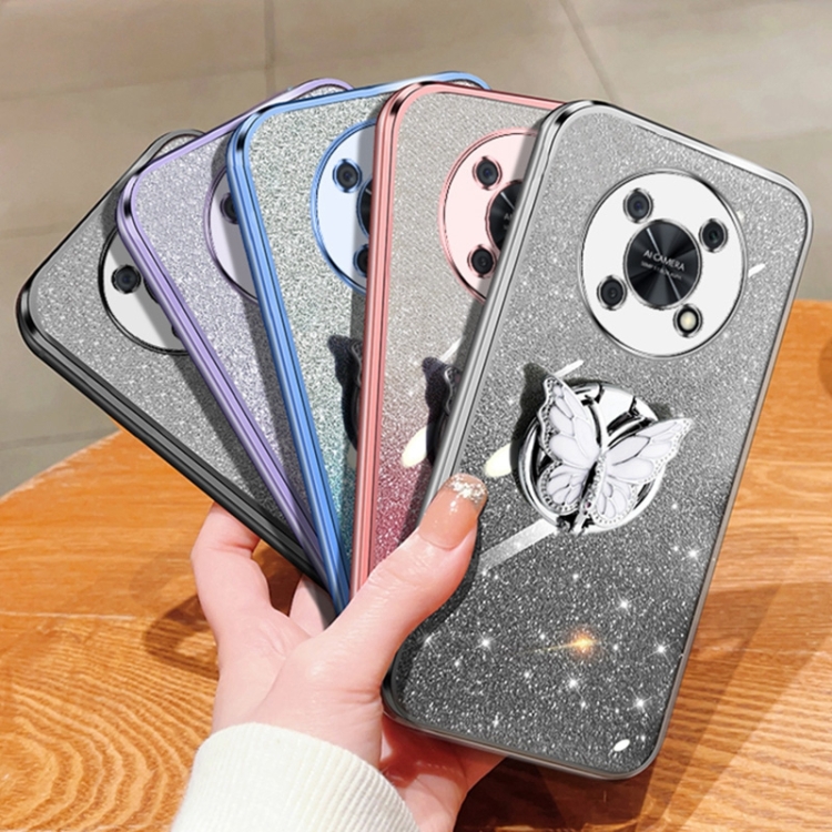 - 1x Funda para Huawei Enjoy 50 Pro TPU con Soporte de Mariposa y Brillo Degradado (Plata)