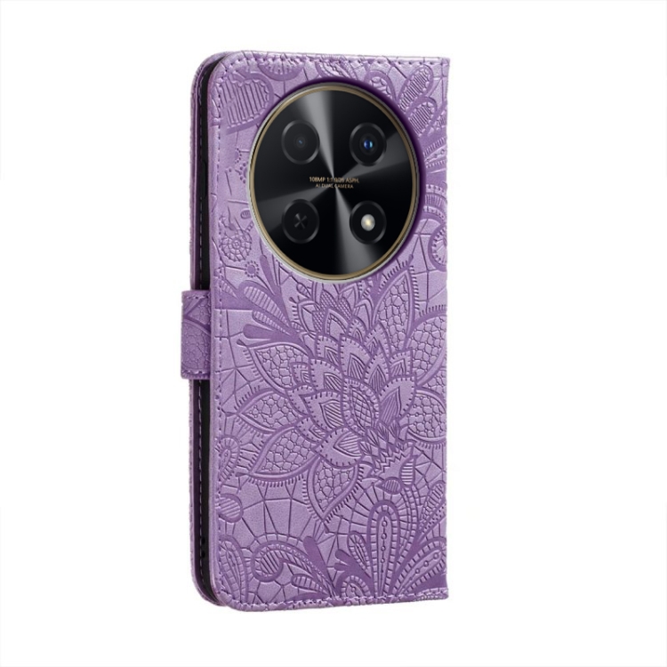 Funda de Cuero para Huawei Enjoy 70 Pro con Tapa y Estampado de Flores (Púrpura)