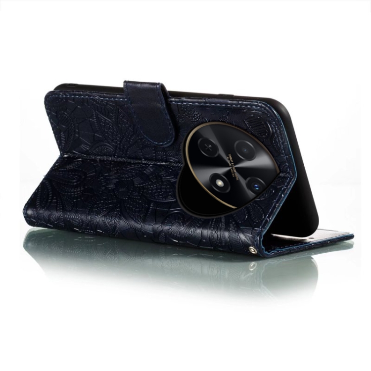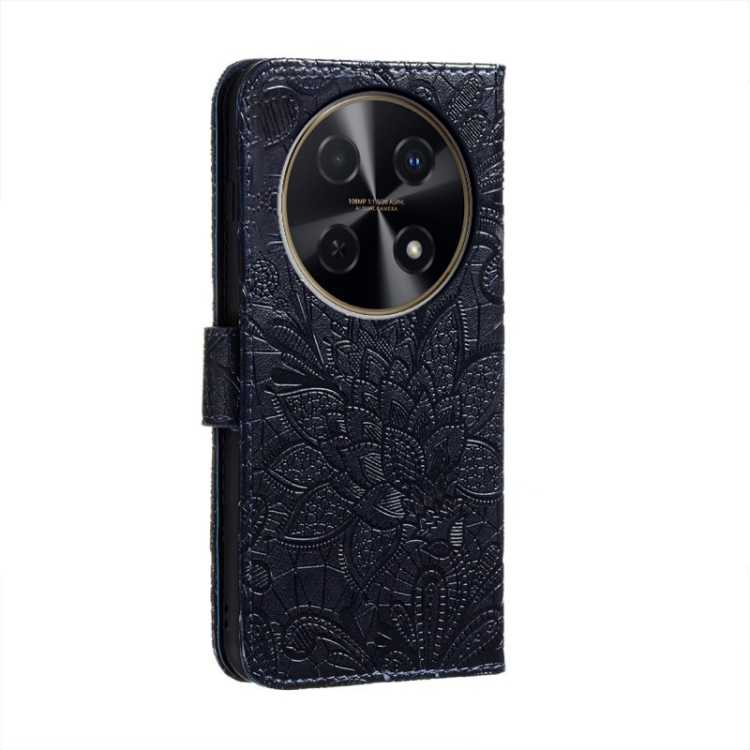 Funda para Huawei Enjoy 70 Pro de Cuero con Tapa y Estampado de Flores de Encaje (Azul Oscuro)