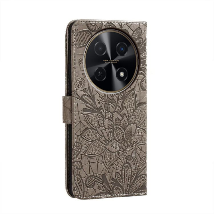 - 1x Funda para Huawei Enjoy 70 Pro de Cuero con Tapa y Estampado de Flores de Encaje (Gris)