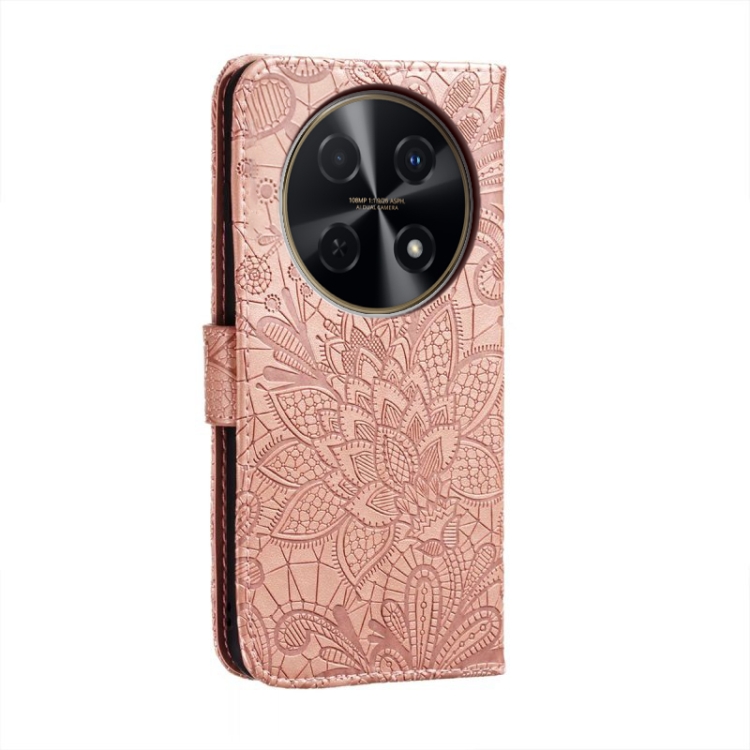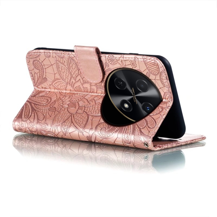 Funda para Huawei Enjoy 70 Pro de Cuero con Tapa y Estampado de Flores de Encaje (Oro Rosa)