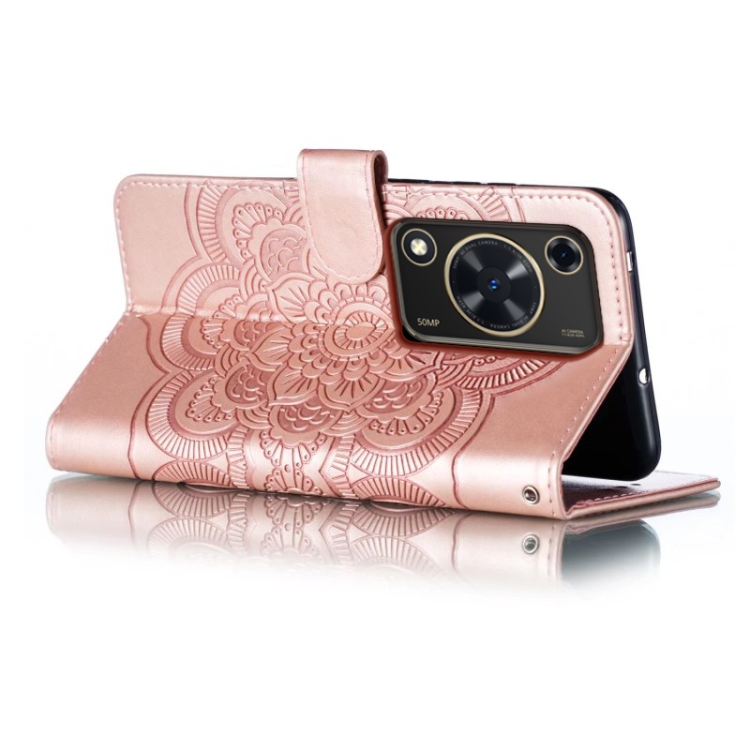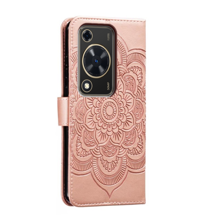 Funda de Cuero para Huawei Enjoy 70 con Patrón en Relieve Sun Mandala (Oro Rosa)