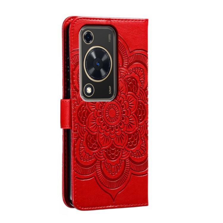 - 1x Funda de Cuero para Huawei Enjoy 70 con Patrón en Relieve Sun Mandala (Rojo)