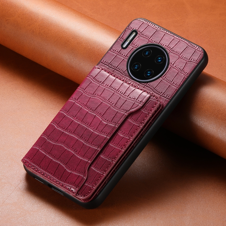 Funda para Huawei Mate 30 Pro con Diseño de Bolsa para Tarjetas y Textura de Cocodrilo (Rojo)