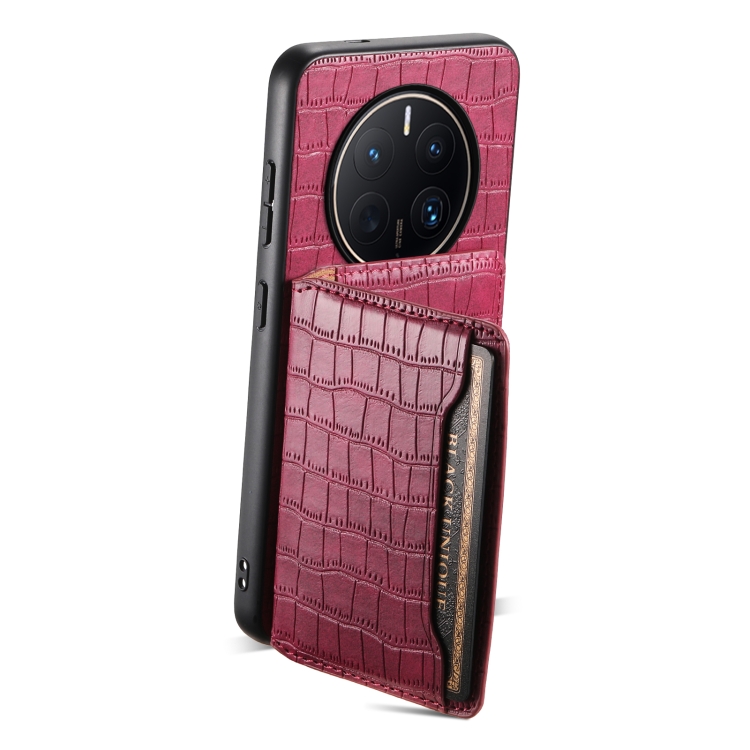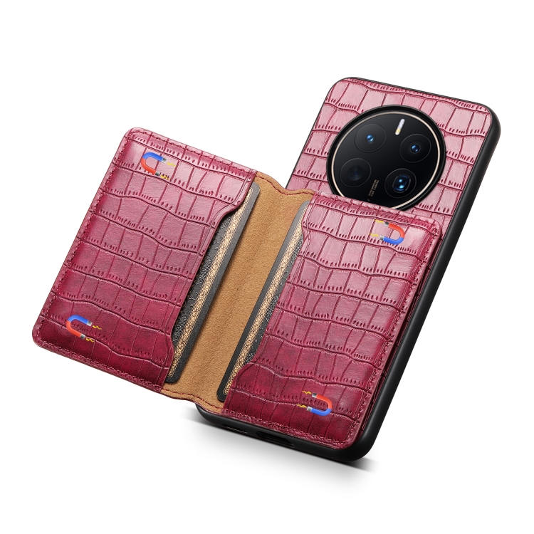 Funda para Huawei Mate 50 Pro con Diseño Bolsa para Tarjetas y Textura de Cocodrilo (Rojo)