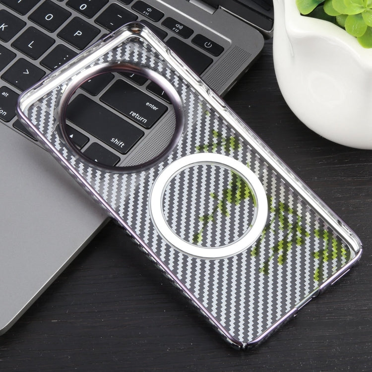 Funda para Huawei Mate 60 Pro y 60 Pro+ Magsafe Transparente PC Fibra de Carbono Plateada 6D (Aurora Purple)