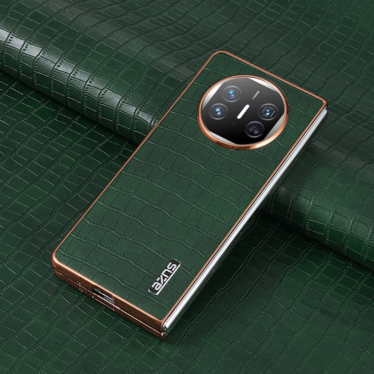 Estuche para Huawei Mate X3 / X5 Azns con Textura de Cocodrilo y Marco Galvanizado (Verde)
