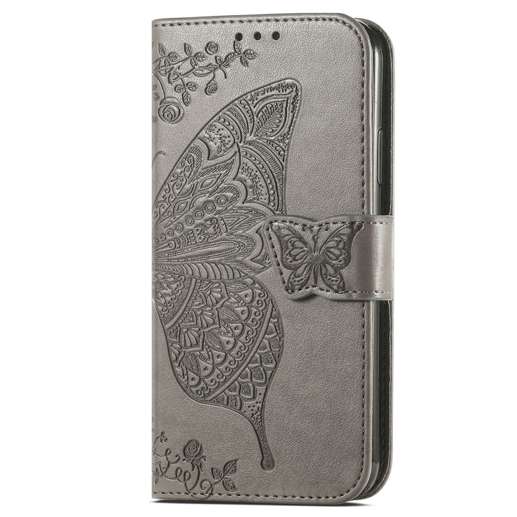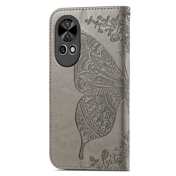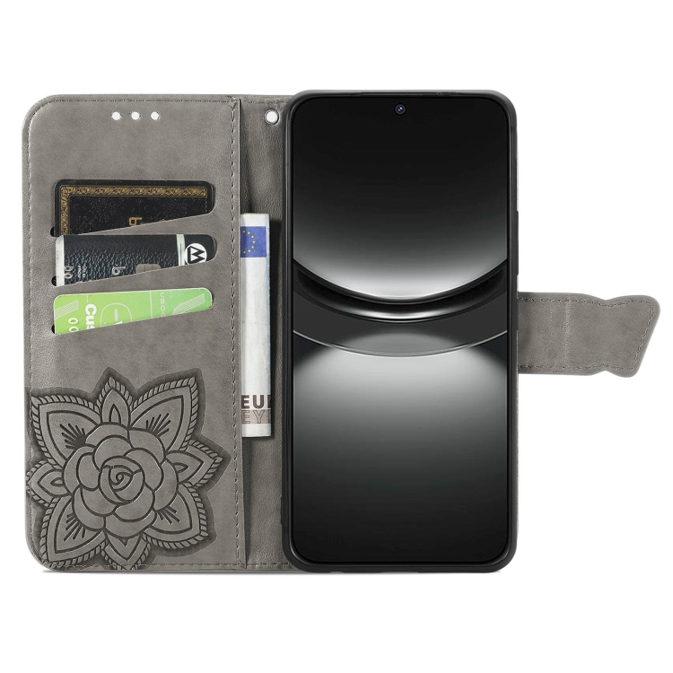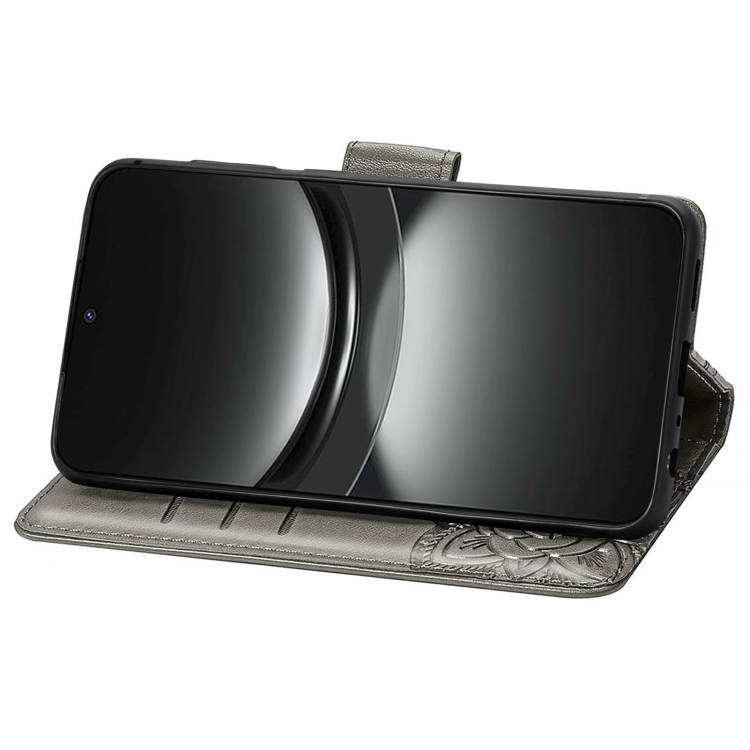 Funda de Cuero para Huawei Nova 12 con Relieve de Flor y Mariposa (Gris)