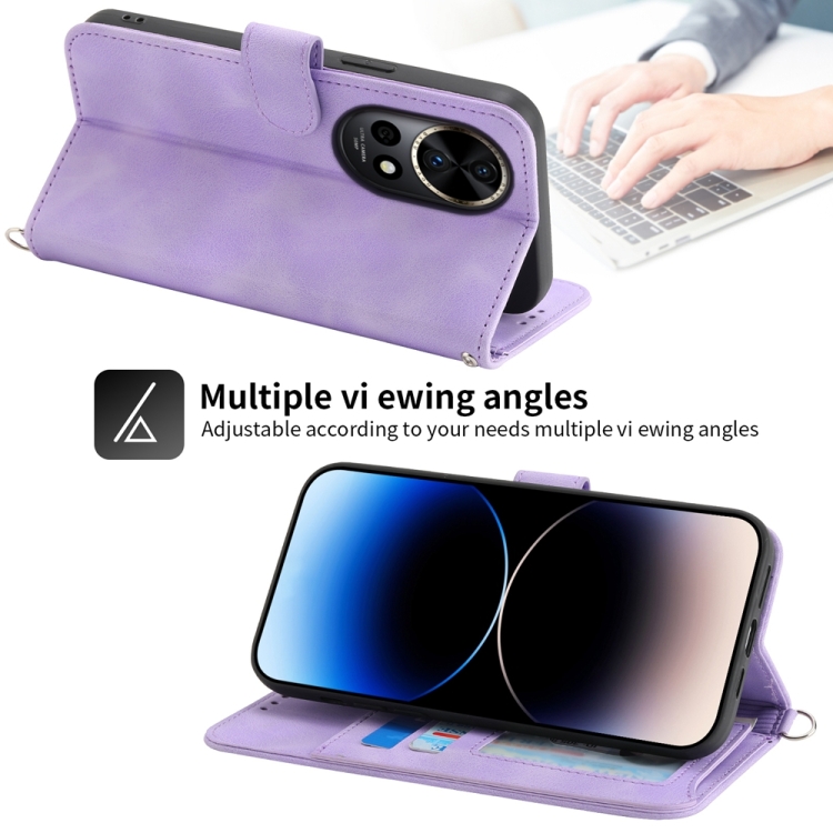 Funda de Cuero para Huawei Nova 12 Pro con Billetera en Relieve y Flores (Púrpura)