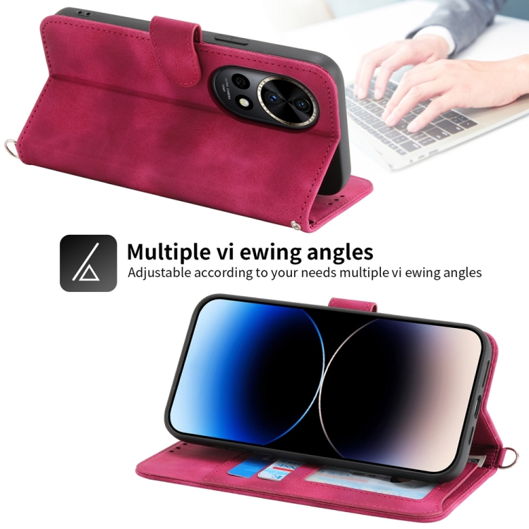 Funda de Cuero para Huawei Nova 12 Pro con Billetera y Flores en Relieve (Rojo Vino)