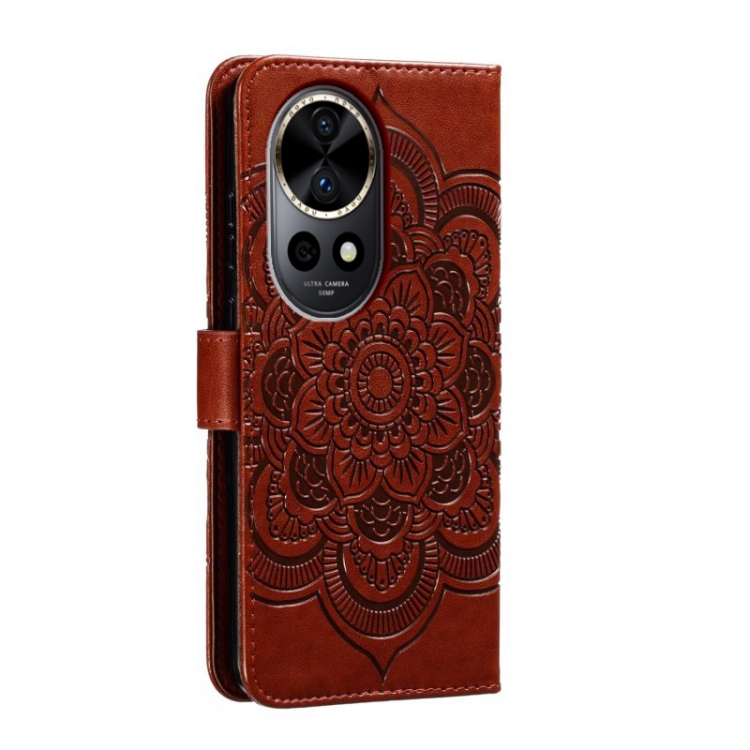 - 1x Funda de Cuero Huawei Nova 12 Pro con Patrón en Relieve Sun Mandala (Marrón)