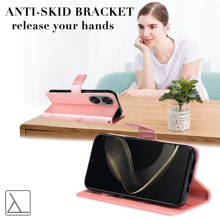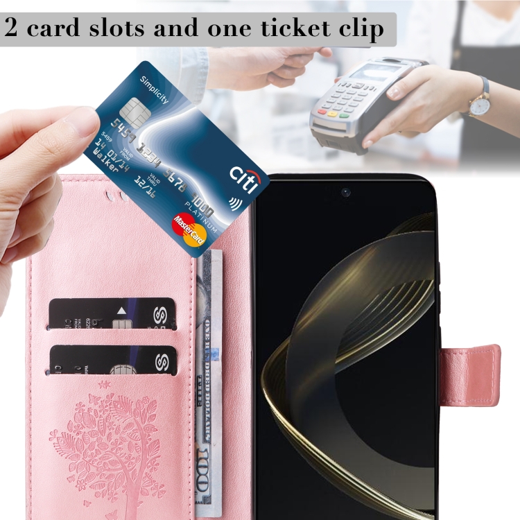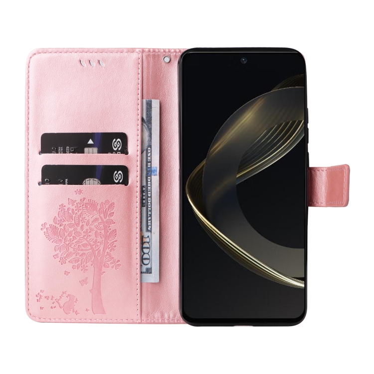 - 1x Funda para Huawei Nova 12 Se y Nova 11 Se de Cuero con Tapa y Patrón Árbol y Gato (Oro Rosa)