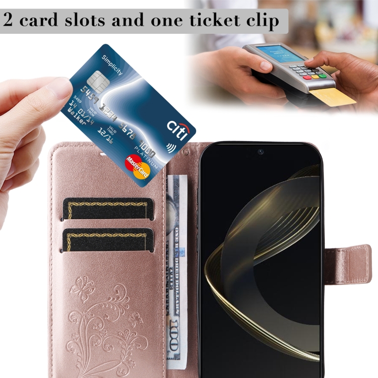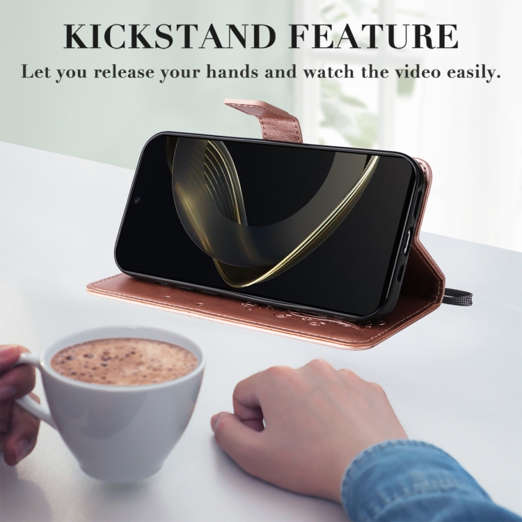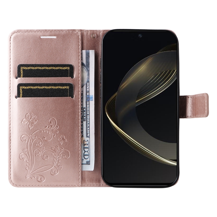 Funda para Huawei Nova 12 Se y Nova 11 Se de Cuero con Tapa y Patrón Mariposa 3D (Oro Rosa)