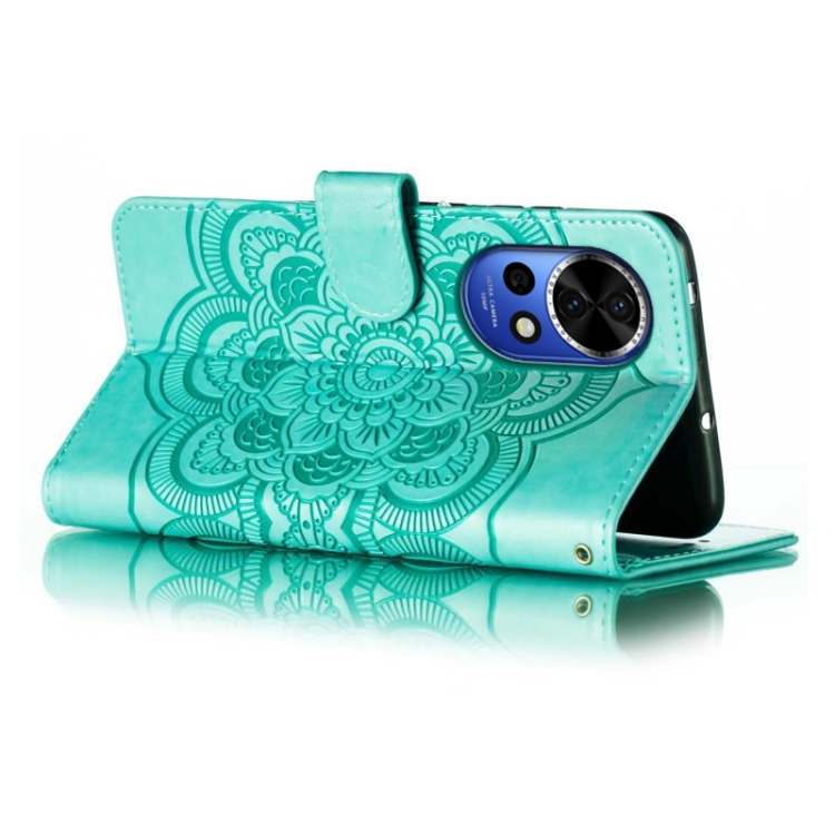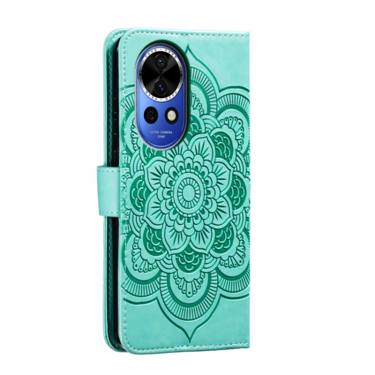 - 1x Funda de Cuero Huawei Nova 12 con Patrón en Relieve Sun Mandala (Verde)