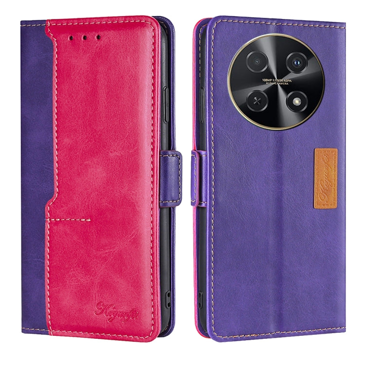 Funda de Cuero para Huawei Nova 12I 4G con Hebilla Lateral (Púrpura + Rojo Rosa)