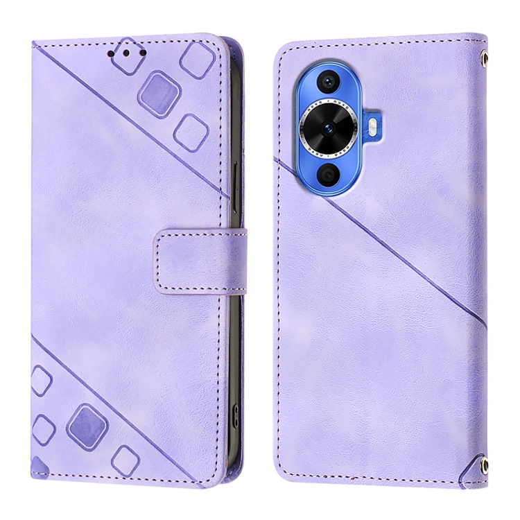 Funda de Cuero para Huawei Nova 12S con Relieve Global Skin Feel (Púrpura Claro)
