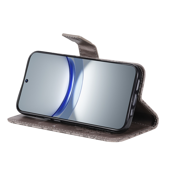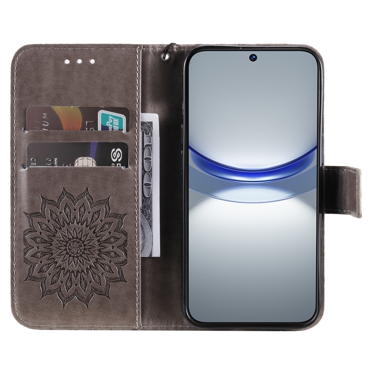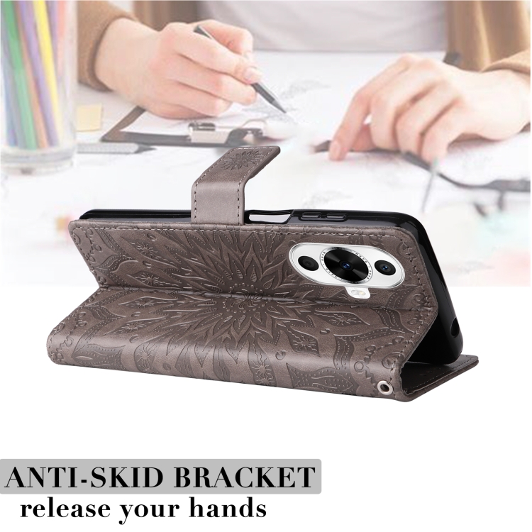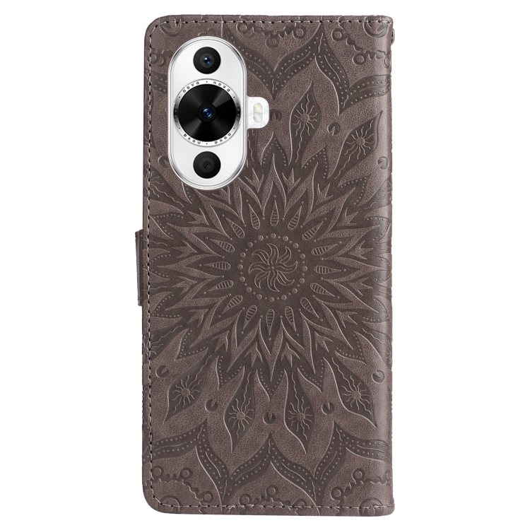 - 1x Funda de Cuero para Huawei Nova 12S con Tapa y Patrón de Girasol en Relieve (Gris)
