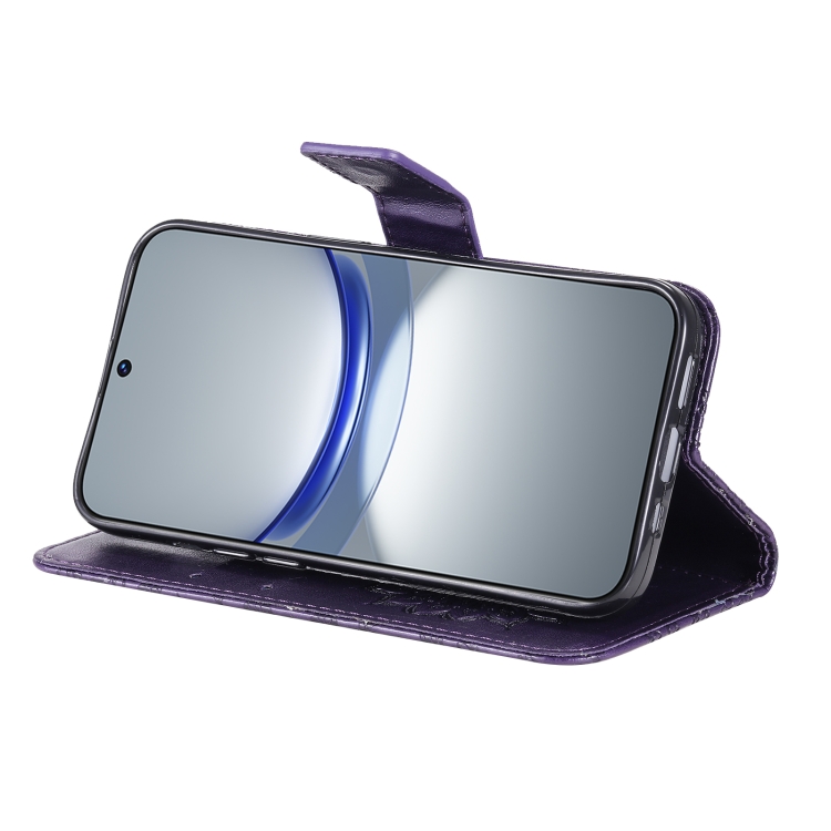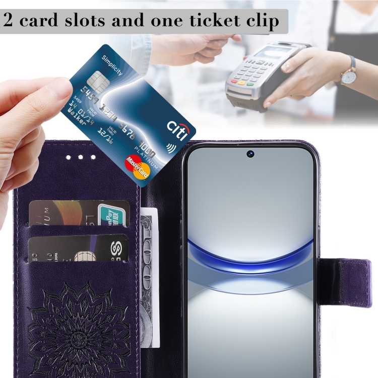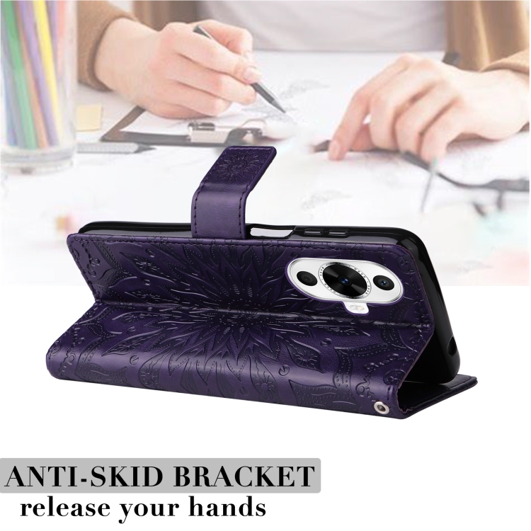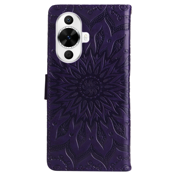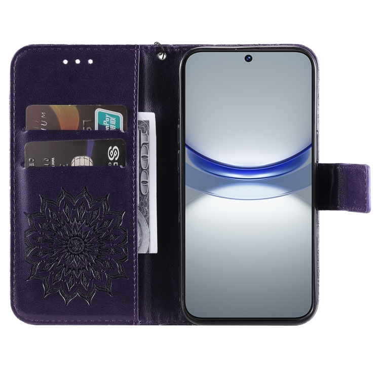 Funda de Cuero para Huawei Nova 12S con Tapa y Patrón de Girasol en Relieve (Púrpura)