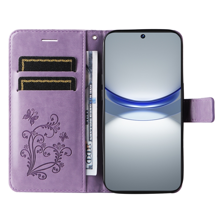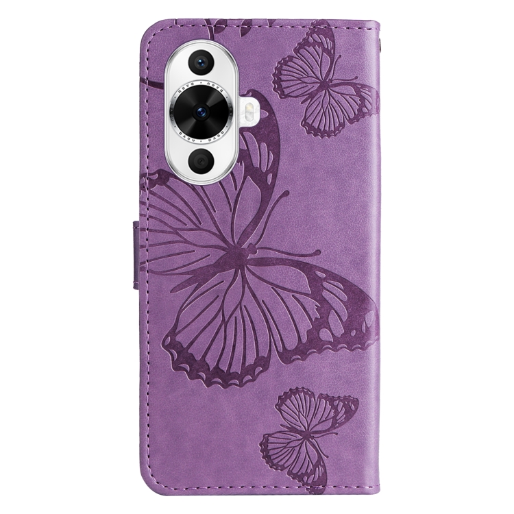 Funda de Cuero con Tapa para Huawei Nova 12S con Patrón Mariposa 3D (Púrpura)