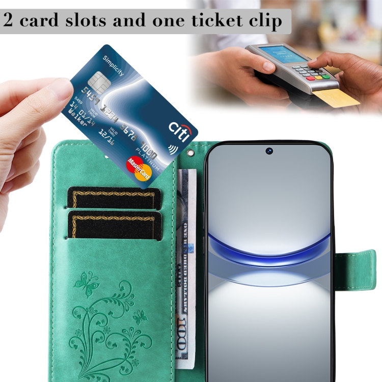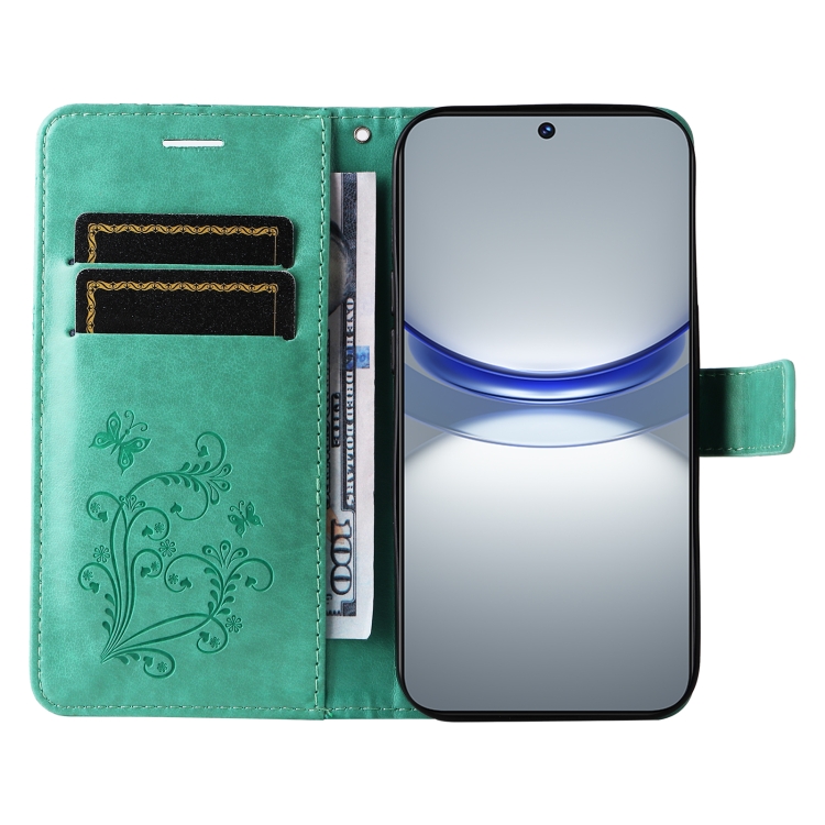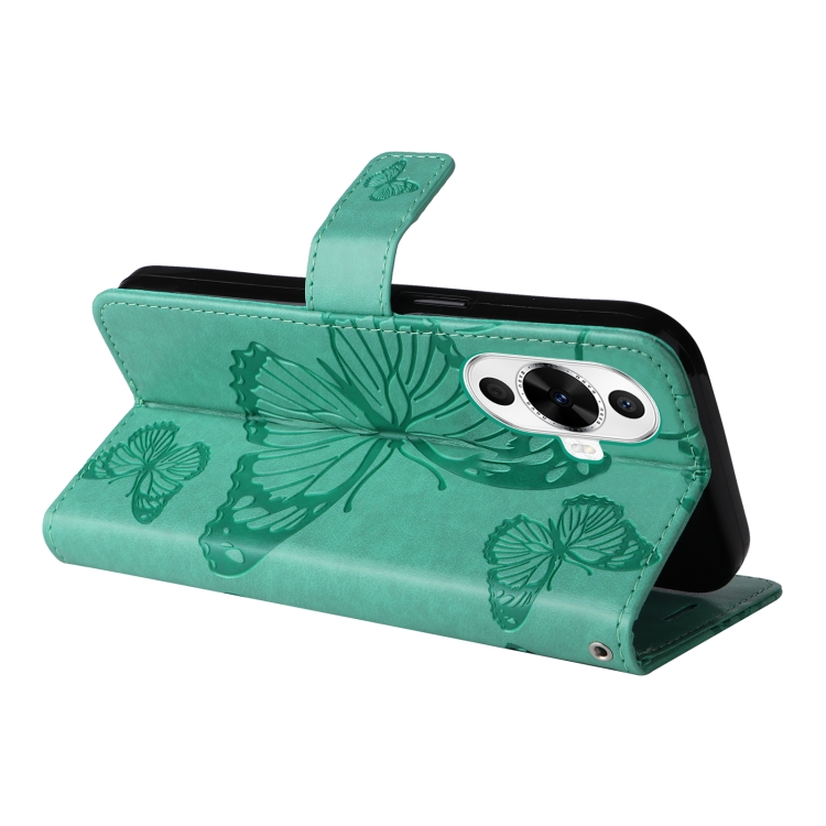 Funda de Cuero para Huawei Nova 12S con Tapa y Patrón En Relieve de Mariposa 3D (Verde)