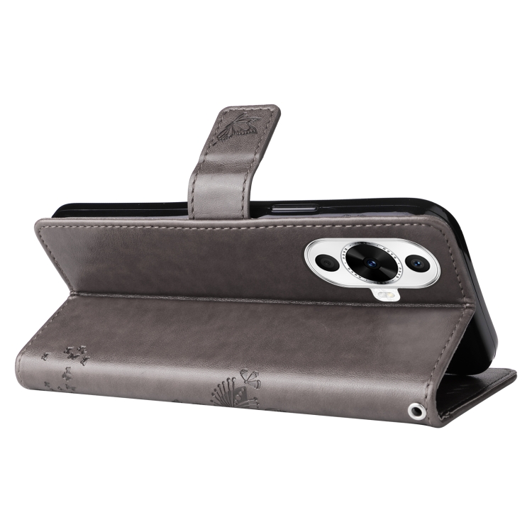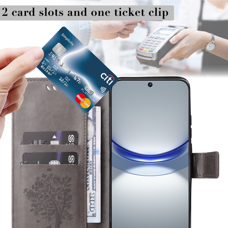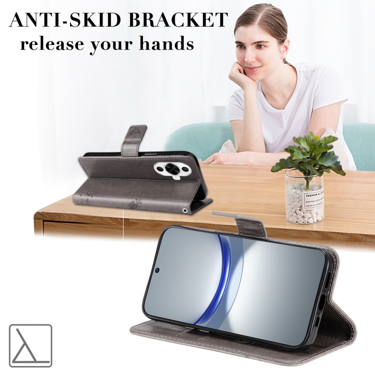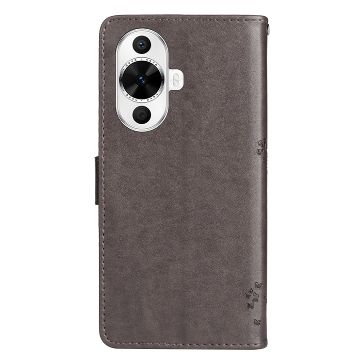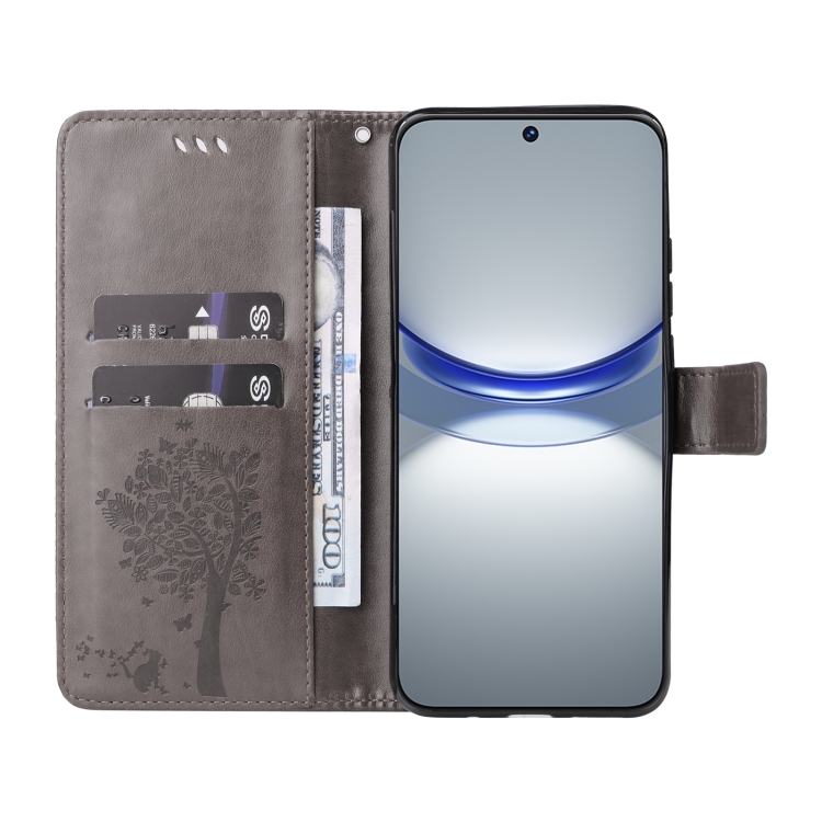 - 1x Funda para Huawei Nova 12S de Cuero con Tapa y Patrón en Relieve de Árbol y Gato (Gris)