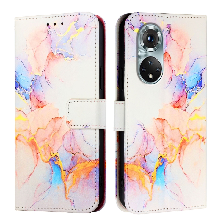 - 1x Funda de Cuero para Huawei Nova 9 Pt003 con Tapa y Patrón Mármol (Blanco)