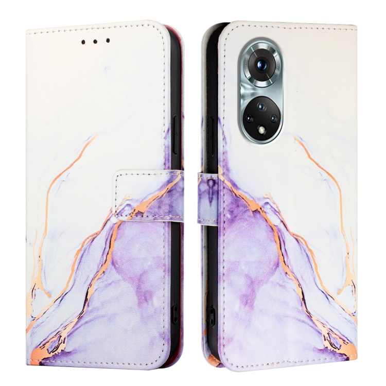 - 1x Funda de Cuero para Huawei Nova 9 Pt003 con Tapa y Patrón de Mármol LS006 Blanco Púrpura