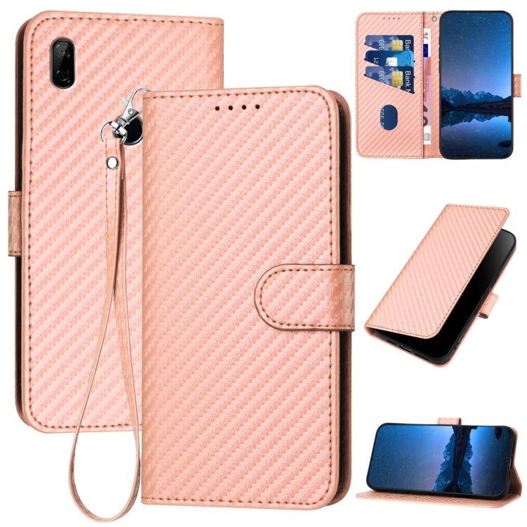 Funda de Cuero para Huawei P Smart Z Yx0070 con Hebilla de Fibra de Carbono y Cordón (Rosa)