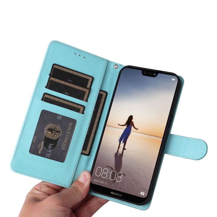 Funda de Teléfono Huawei P20 Lite con Tapa de Cuero Diamond Lattice (Verde Menta)