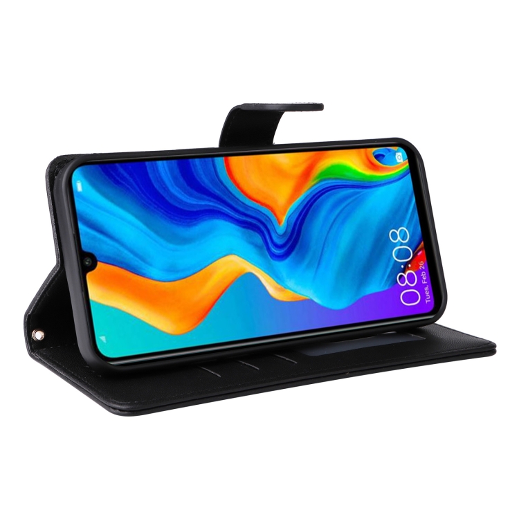 Funda de Teléfono Huawei P30 Lite con Tapa de Cuero Diamond Lattice (Negro)