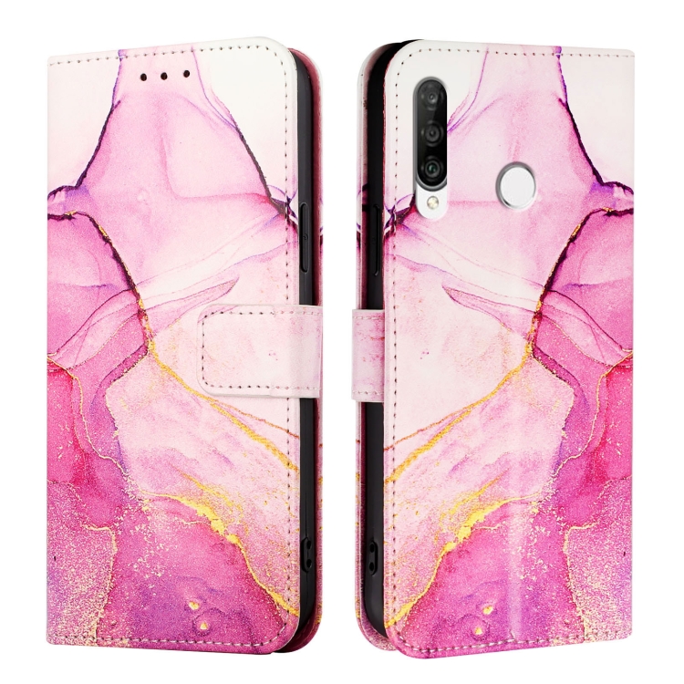 Funda de Cuero con Tapa para Huawei P30 Lite / Nova 4E Pt003 con Patrón Mármol (Rosa Púrpura Dorado)