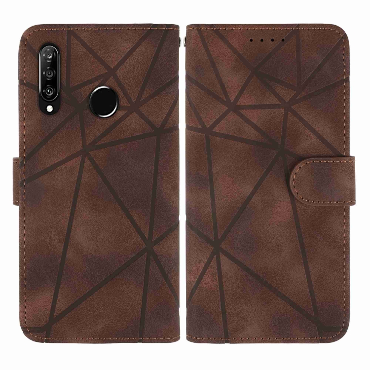 - 1x Funda de Cuero para Huawei P30 Lite con Líneas Geométricas (Marrón)