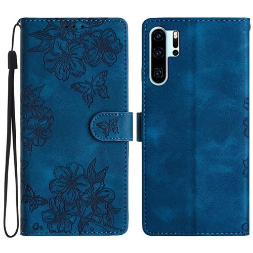Funda para Huawei P30 Pro Cherry Blossom Butterfly Skin Feel de PU en Relieve (Azul)