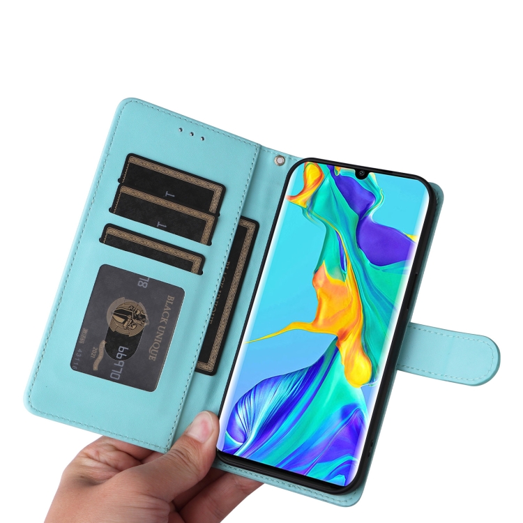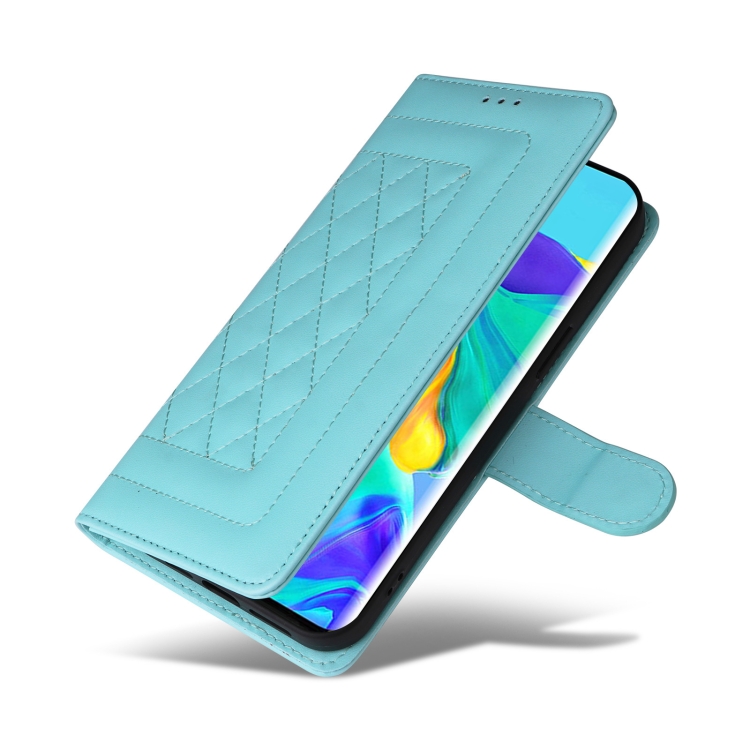 Funda de Teléfono Huawei P30 Pro con Tapa de Cuero Diamond Lattice (Verde Menta)