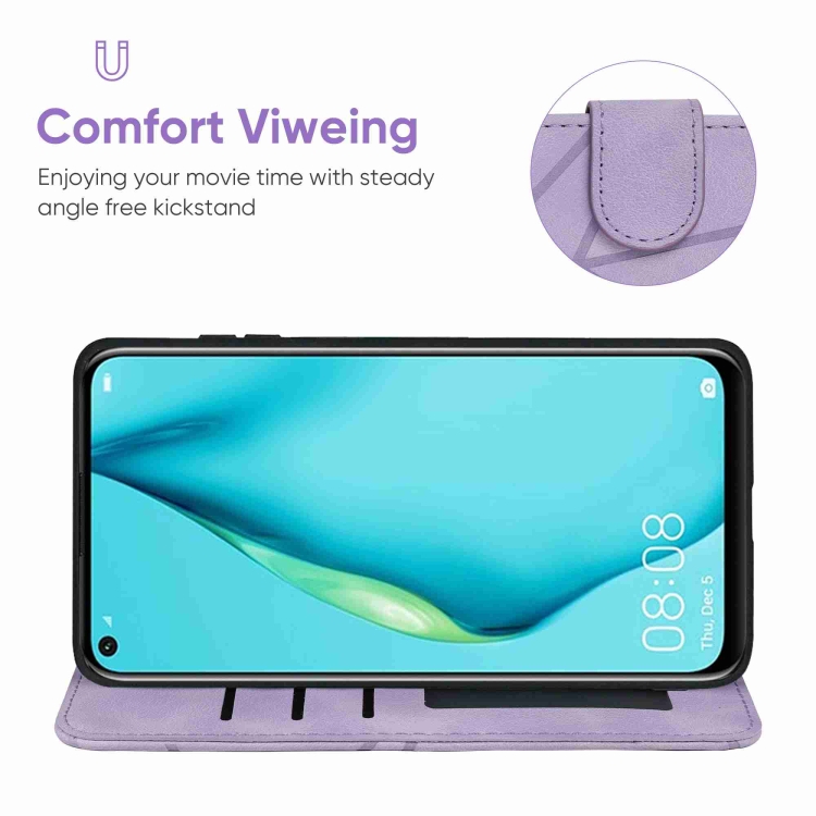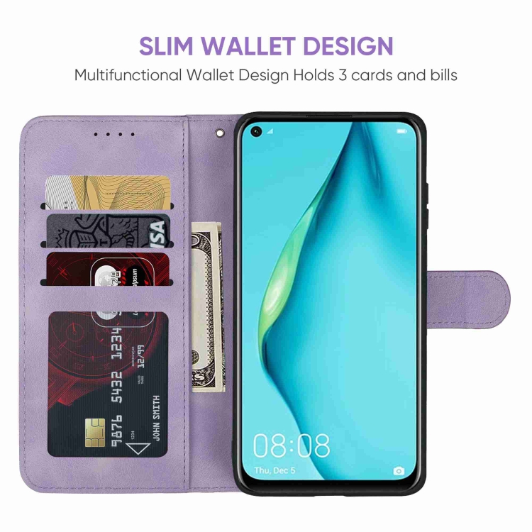 Funda de Cuero para Huawei P40 Lite Skin Feel con Líneas Geométricas (Púrpura)