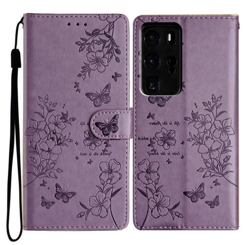 - 1x Funda de Cuero para Huawei P40 Pro Butterfly Love Flower en Relieve (Púrpura)