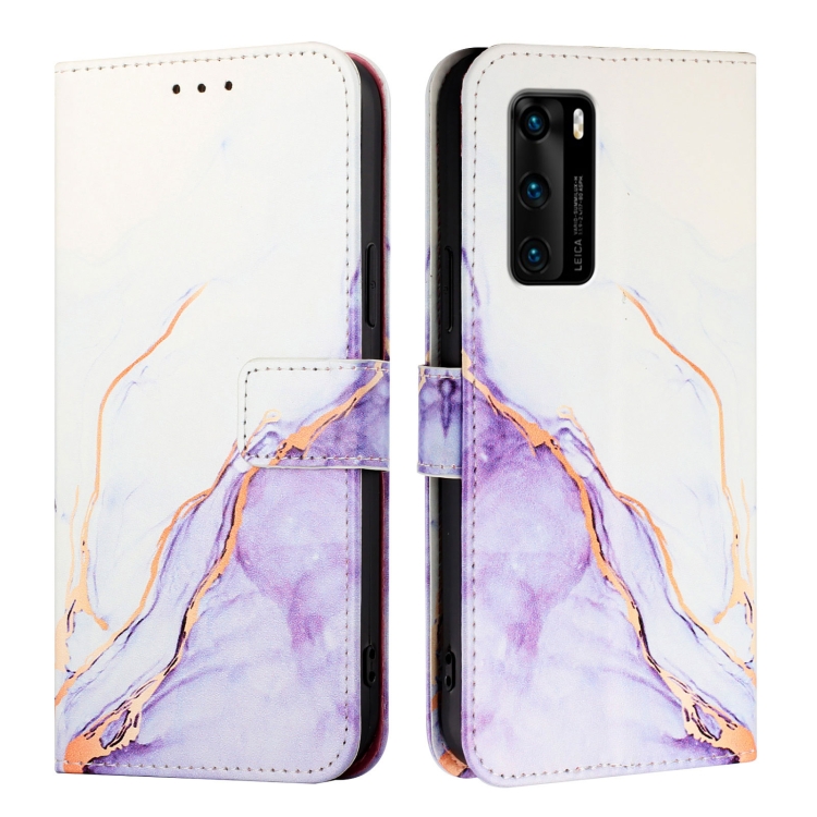 - 1x Funda de Cuero para Huawei P40 Pt003 con Tapa y Patrón de Mármol (Ls006 Blanco Púrpura)