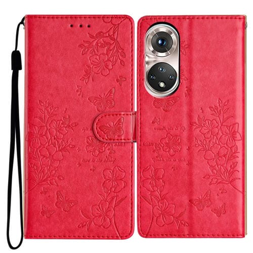- 1x Funda de Cuero para Huawei P50 Pro Butterfly Love Flower en Relieve (Rojo)