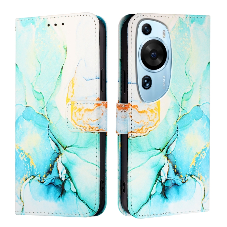 Funda de Cuero para Huawei P60 Art Pt003 con Tapa y Patrón de Mármol (Ls003 Verde)