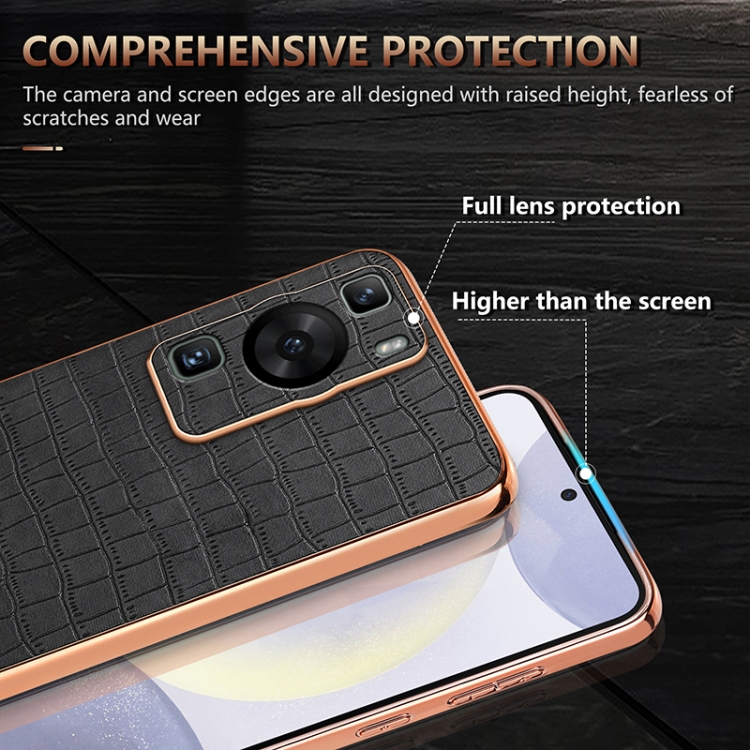 Funda para Huawei P60 y P60 Pro con Cobertura Total y Textura de Cocodrilo (Marrón)