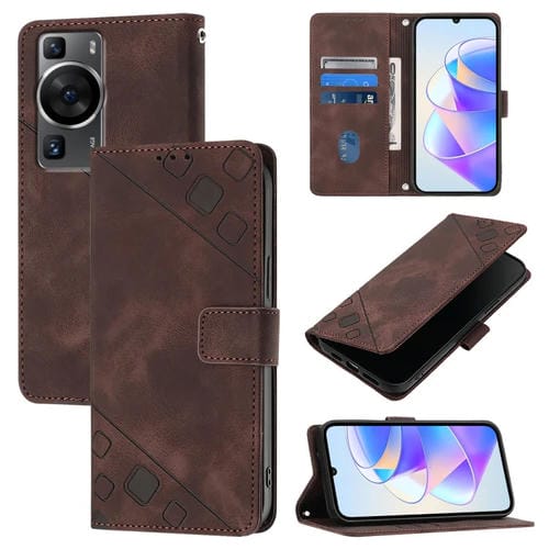 Funda de Cuero Skin Feel para Huawei P60 y P60 Pro en Relieve (Marrón)